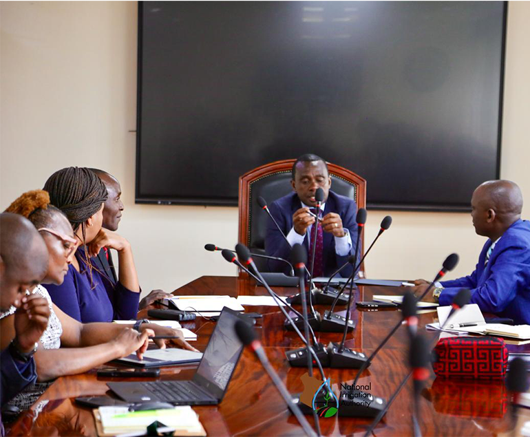 The National Irrigation Authority (NIA) CEO, Eng. Charles Muasya, MBS together with the management and senior staff, held a consultative meeting with the National Cohesion and Integration Commission (NCIC) led by the CEO Dr. Daniel Mutegi Giti and senior officers to explore areas of collaboration on irrigation development, water equity and sustainable peace.